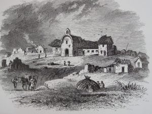 For sheer damnation, however, none could compare to Mission Santa Cruz. Nicknamed the “Hard Luck Mission,” its unending sob stories included not just the requisite fires, famines, floods and earthquakes but plague, crime, kidnapping and even a pirate! Spanish law forbade the settlement of pueblos within a league of the Missions, but Governor Borica nonetheless ordered the founding of Branciforte, which quickly became a haven for smugglers, gamblers, prostitutes and other assorted miscreants. Enormous friction arose when the townspeople took over the padres’ valuable pasturage and bullied the already unhappy Mission Indians. In 1806, the area suffered the most disastrous epidemic in California’s Spanish Era when so many thousands of Indians died of measles their population was reduced by one fourth! More bad news arrived in 1818 when Argentine pirate Hippolyte Bouchard was spotted off the coast of Monterrey. Known for pillaging the Missions and coastal communities, his presence prompted the padres to round up their flock and flee inland after extracting a promise that Branciforte would protect the Mission. When the pirate decided not to put ashore, the townspeople looted the entire compound themselves, stealing wine, food, farm implements. Even the church candlesticks and saints’ vestments disappeared.